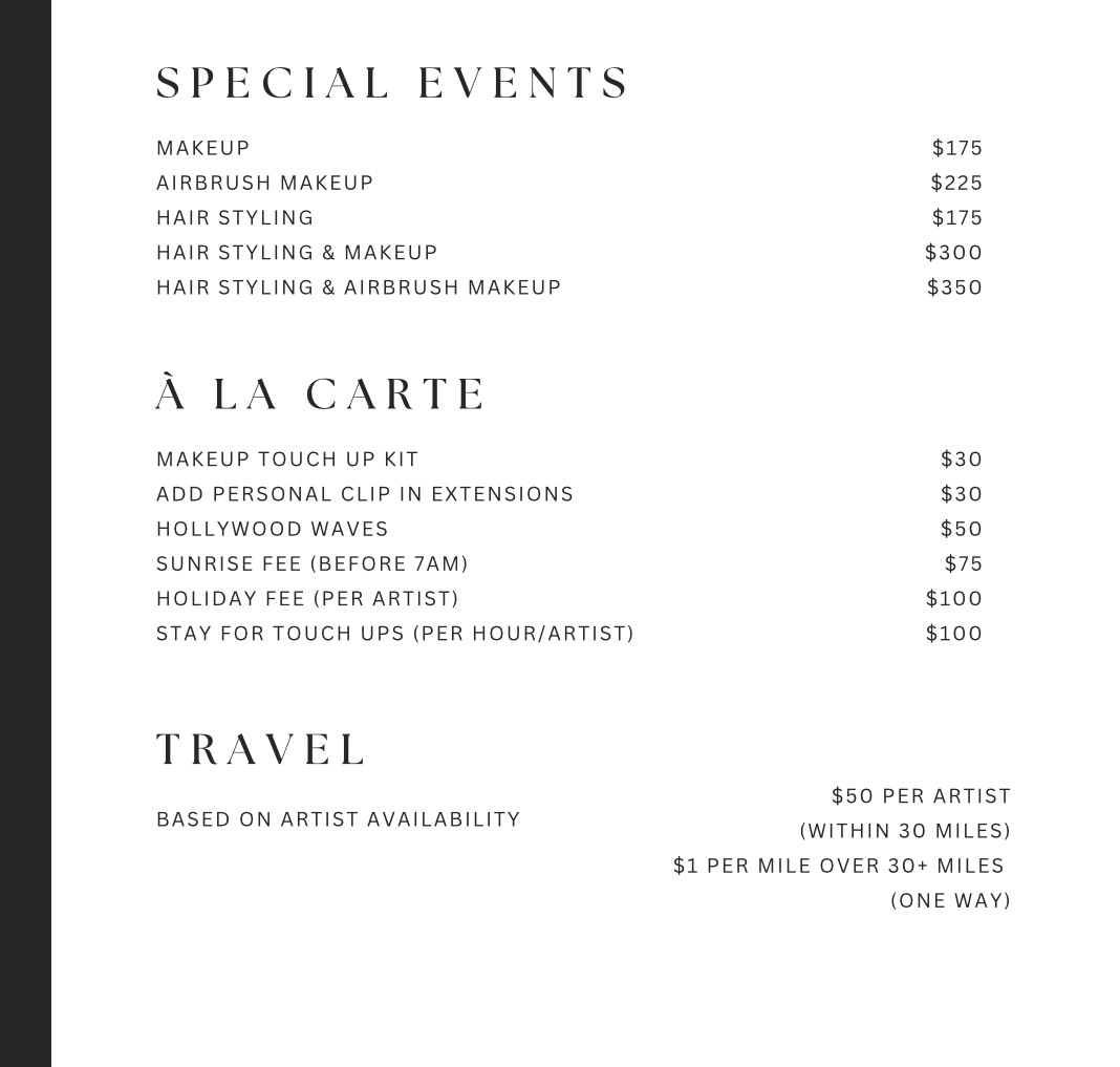 Our services are perfect for weddings, bridal parties, photoshoots, corporate events, and special occasions, ensuring that you look and feel your best no matter the event. Whether it’s a timeless, elegant look or a more glamorous style, our goal is to make every client feel confident, radiant, and beautiful.